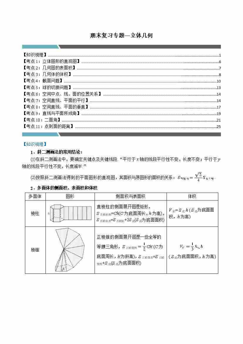 首页 > 全部 > 期末专项 > 期末复习专题— 立体几何(11类大考点)(人教A版2019必修第二册)(学生版)