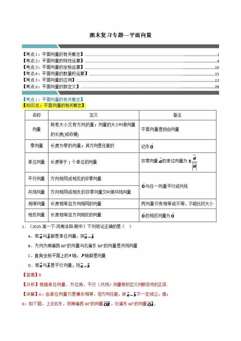 首页 > 全部 > 期末专项 > 期末复习专题— 平面向量(6类大考点)(人教A版2019必修第二册)(教师版)