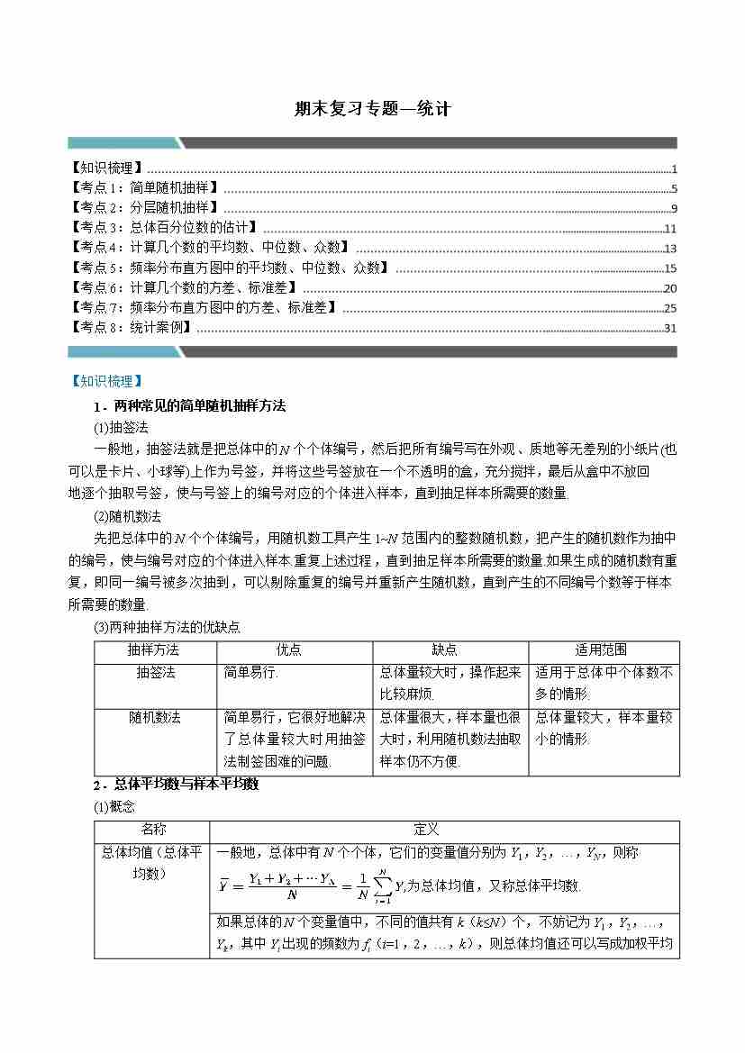 首页 > 全部 > 期末专项 > 期末复习专题— 统计(8类大考点)(人教A版2019必修第二册)(教师版)
