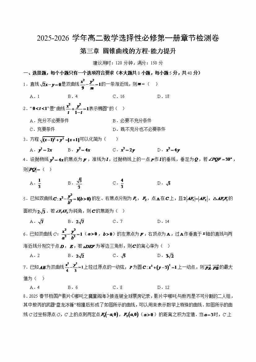 第三章 圆锥曲线的方程测试·提升卷(考试版A4)