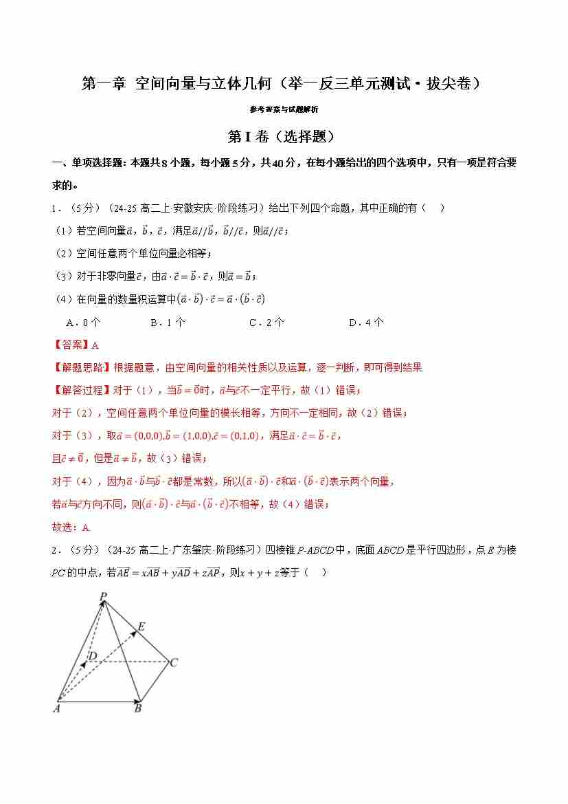 首页 > 全部 > 举一反三 > 第一章 空间向量与立体几何(举一反三单元测试·拔尖卷)(教师版)