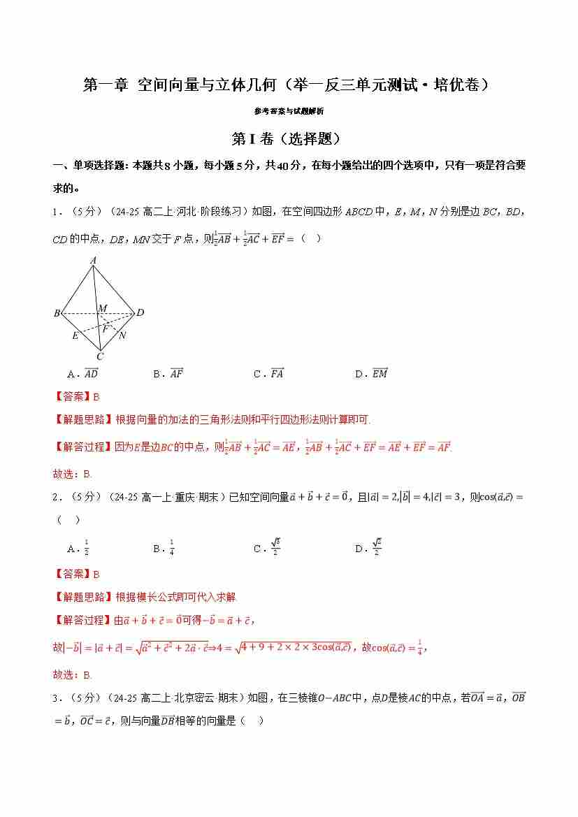 首页 > 全部 > 举一反三 > 第一章 空间向量与立体几何(举一反三单元测试·培优卷)(教师版)