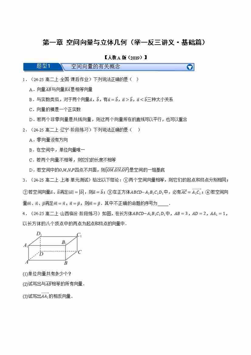 第一章 空间向量与立体几何(举一反三讲义·基础篇)(学生版)