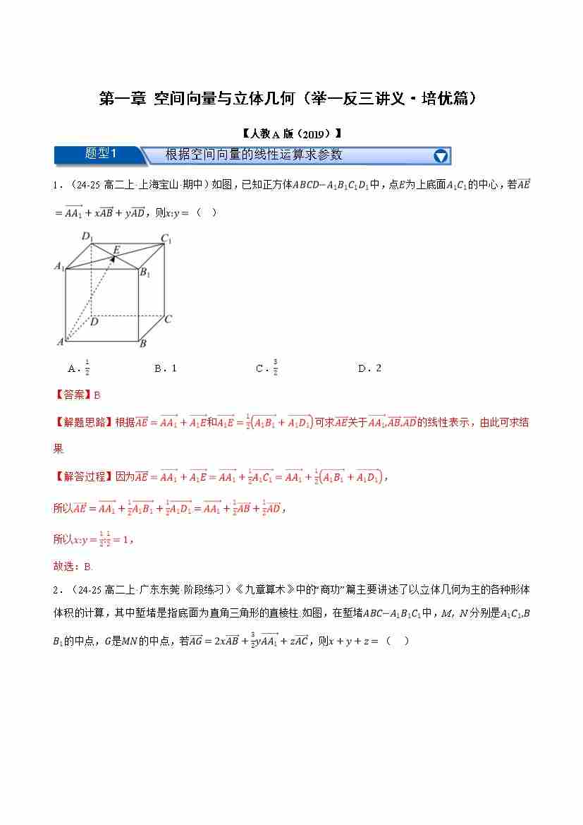 首页 > 全部 > 举一反三 > 第一章 空间向量与立体几何(举一反三讲义·培优篇)(教师版)