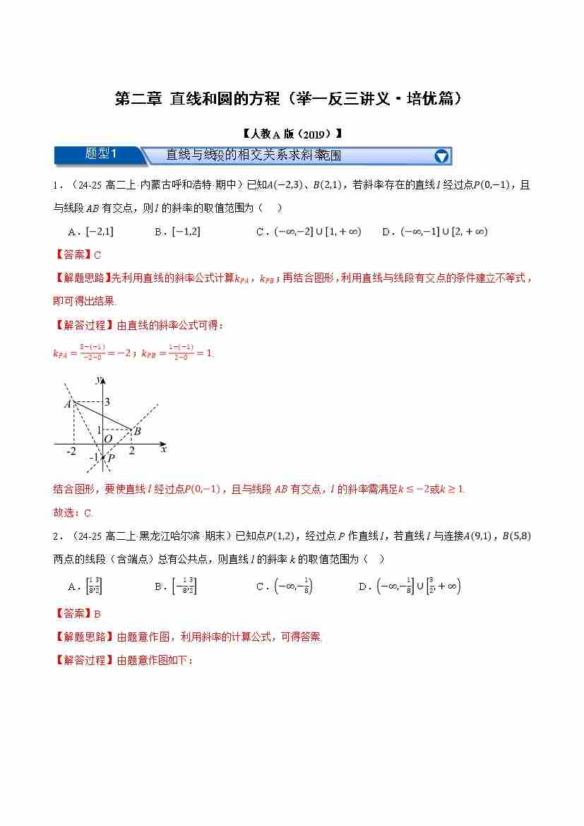首页 > 全部 > 举一反三 > 第二章 直线和圆的方程(举一反三讲义·培优篇)(教师版)
