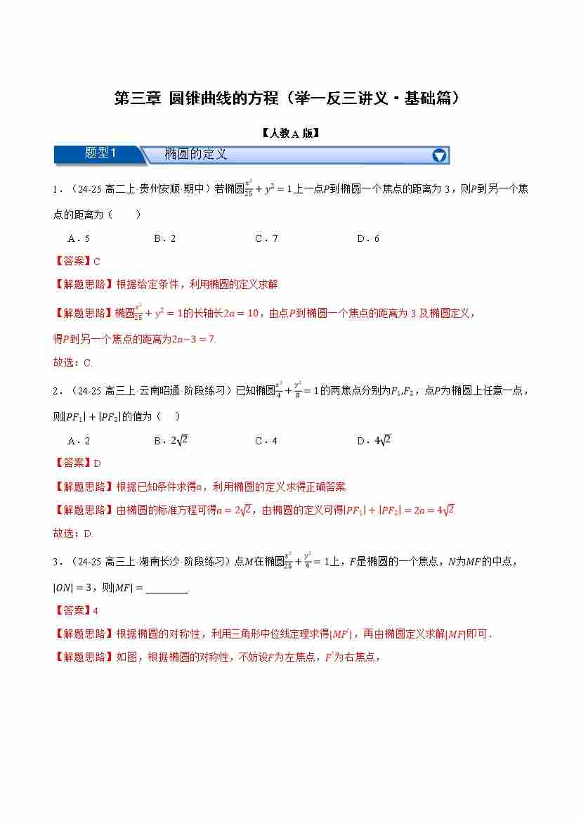 首页 > 全部 > 举一反三 > 第三章 圆锥曲线的方程(举一反三讲义·基础篇)数学人教A版选择性必修第一册(教师版)