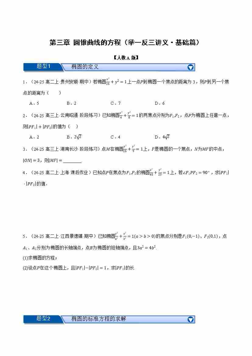 首页 > 全部 > 举一反三 > 第三章 圆锥曲线的方程(举一反三讲义·基础篇)数学人教A版选择性必修第一册(学生版)