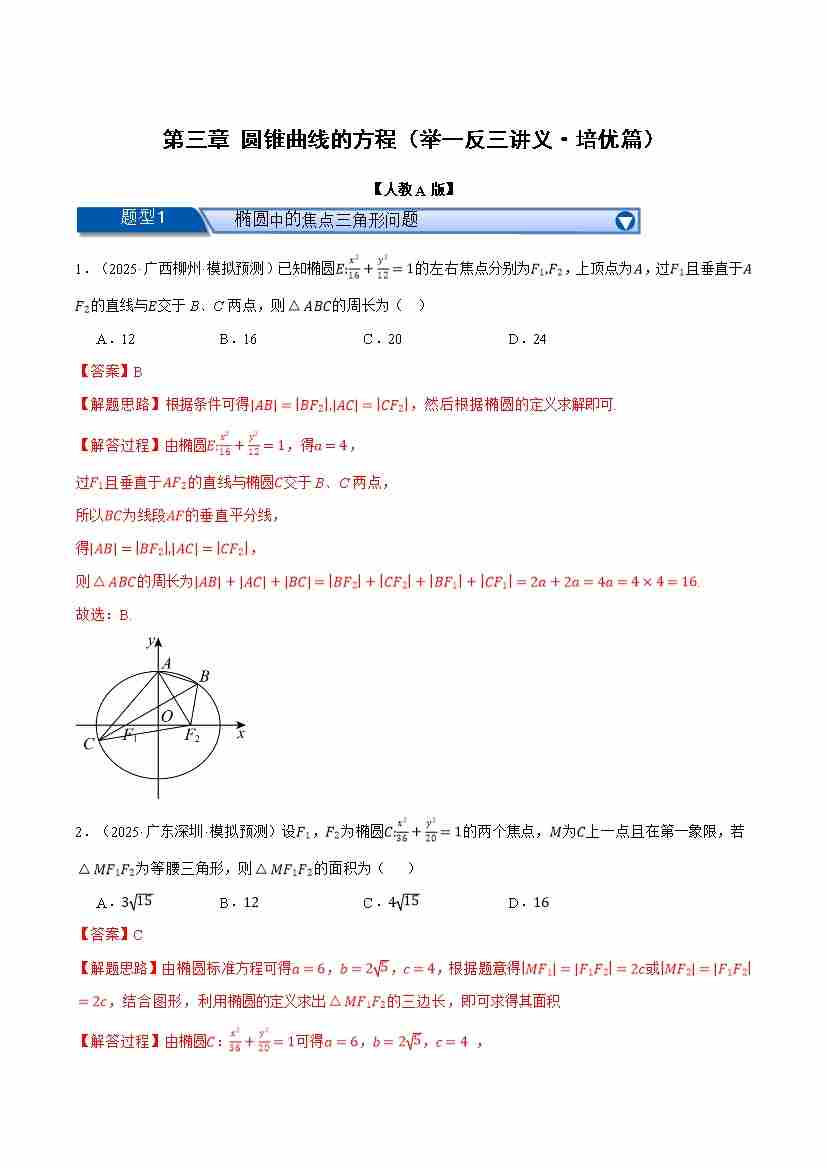 首页 > 全部 > 举一反三 > 第三章 圆锥曲线的方程(举一反三讲义·培优篇)数学人教A版选择性必修第一册(教师版)