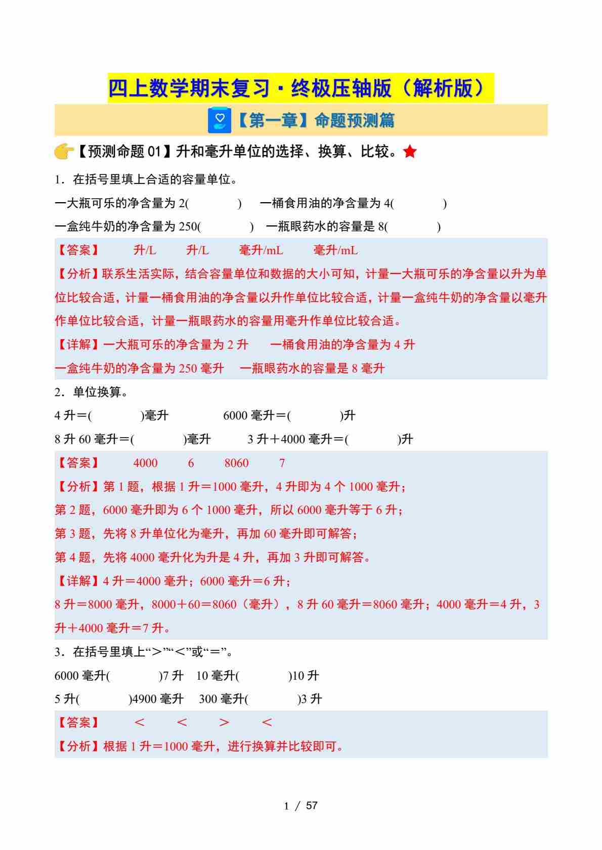 首页 > 全部 > 期末专项 > 四上数学(苏教版) 期末复习·终极压轴版(解析版)