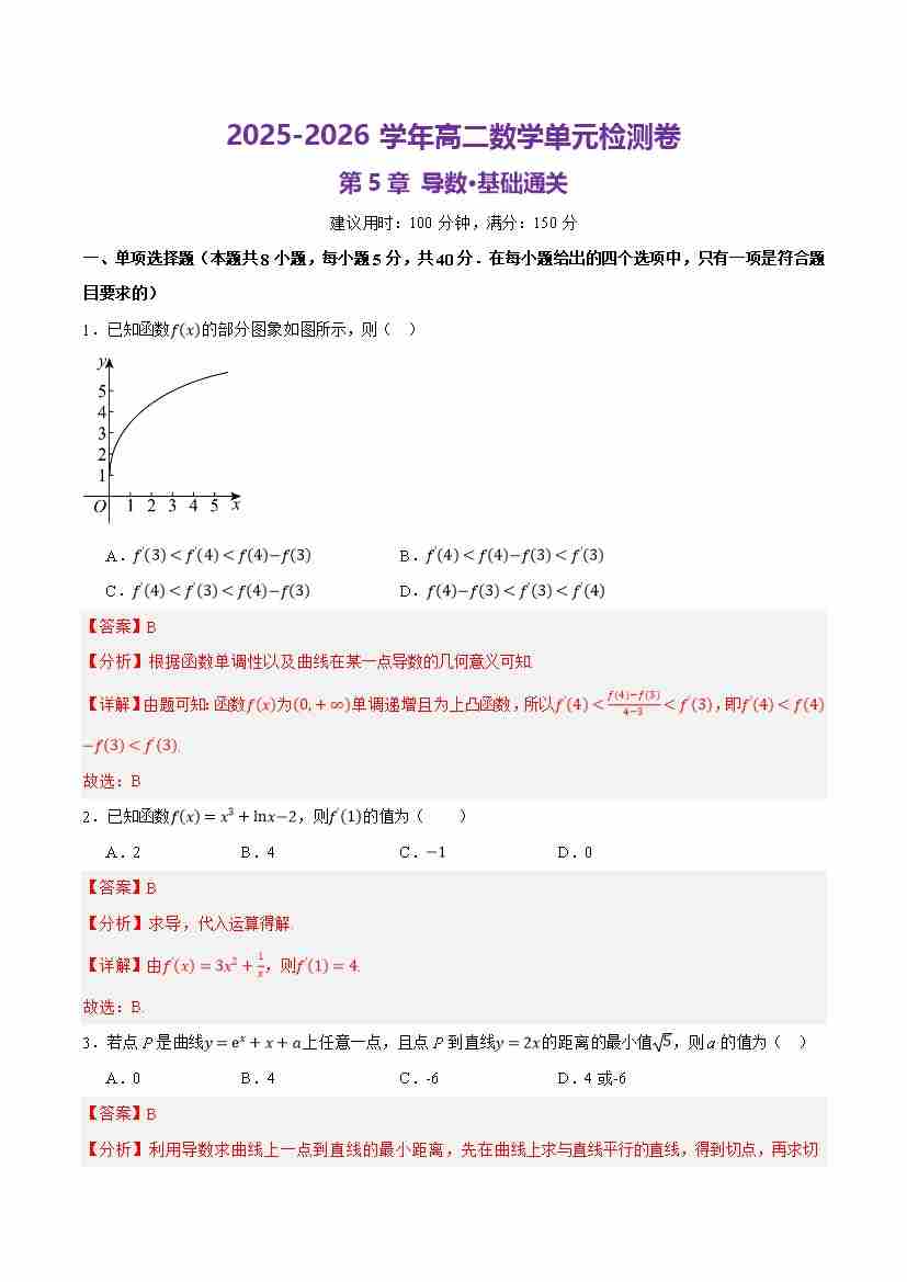 首页 > 全部 > 单元提升卷 > 第五章一元函数的导数及其应用(单元测试·基础卷)(解析版)