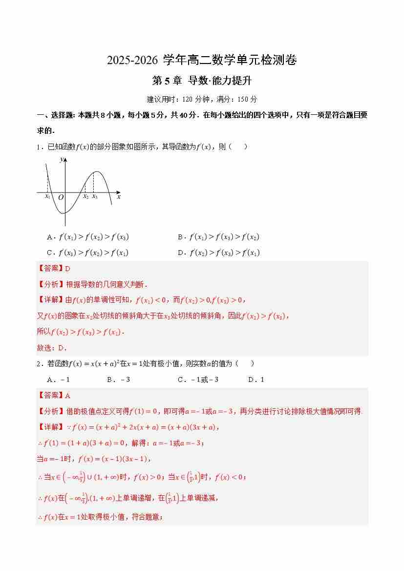 首页 > 全部 > 单元提升卷 > 第五章一元函数的导数及其应用(单元测试·提升卷)(解析版)