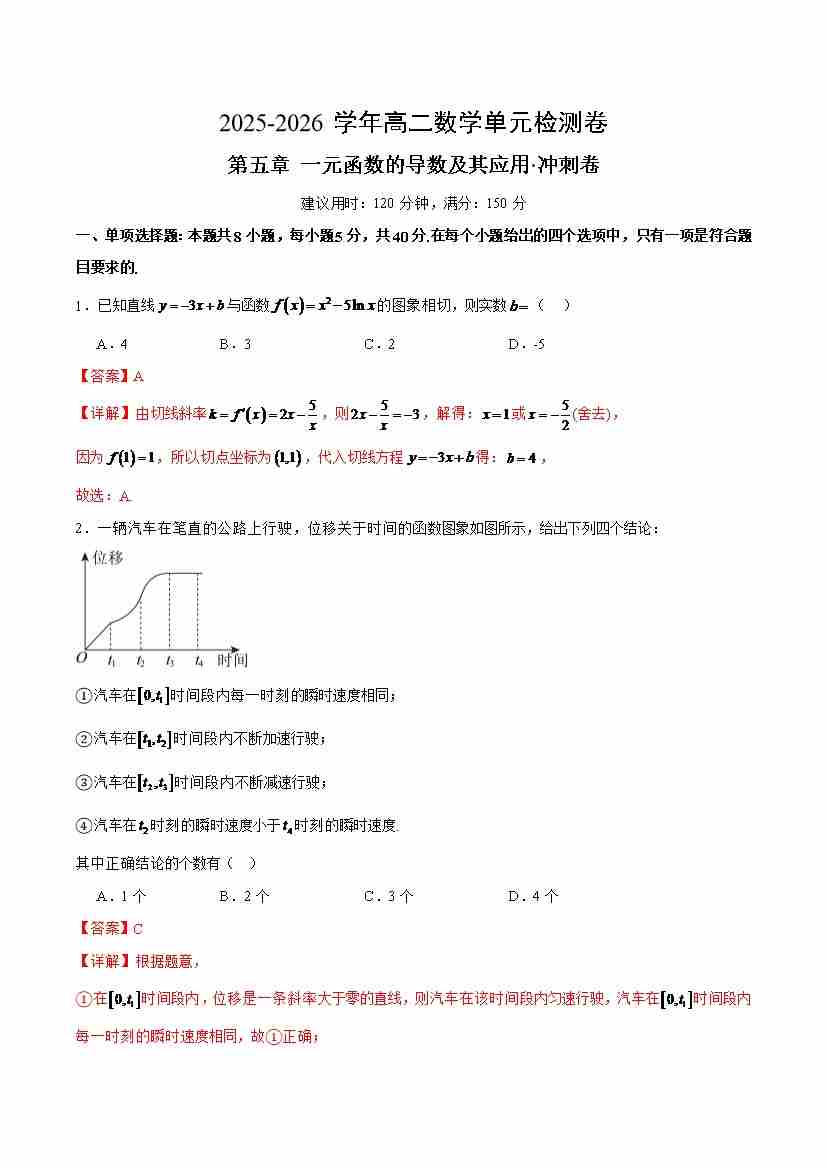 高二数学第五章 一元函数的导数及其应用测试·冲刺卷(解析版)