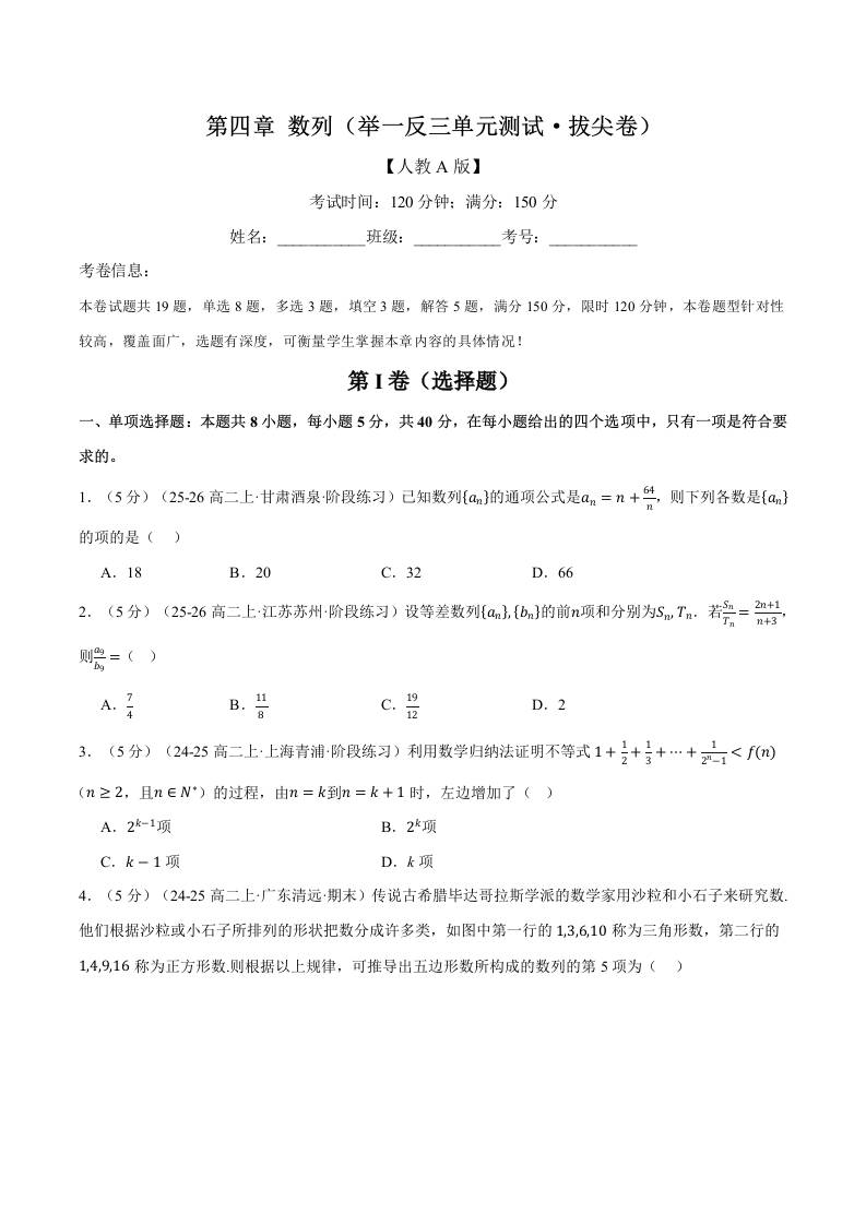 首页 > 全部 > 举一反三 > 第四章 数列(举一反三单元测试·拔尖卷)(学生版)