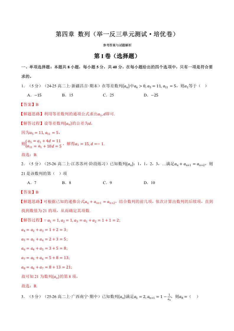 首页 > 全部 > 举一反三 > 第四章 数列(举一反三单元测试·培优卷)(教师版)