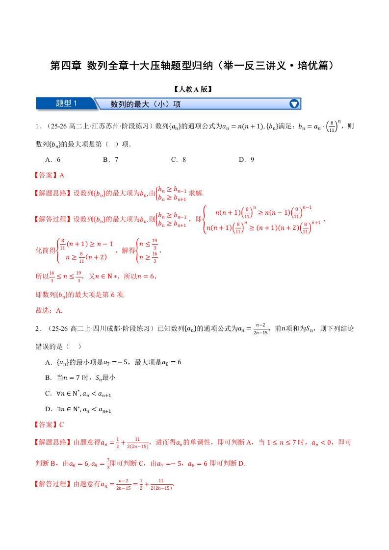 首页 > 全部 > 举一反三 > 第四章 数列(举一反三讲义·培优篇)(教师版)