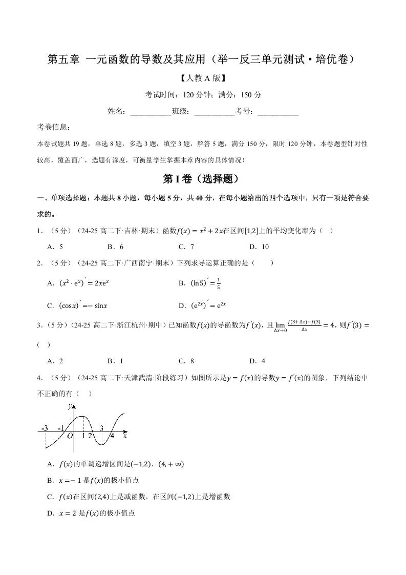 第五章 一元函数的导数及其应用(举一反三单元测试·培优卷)(学生版)