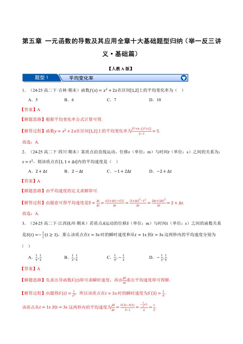 首页 > 全部 > 举一反三 > 第五章 一元函数的导数及其应用(举一反三讲义·基础篇)(教师版)