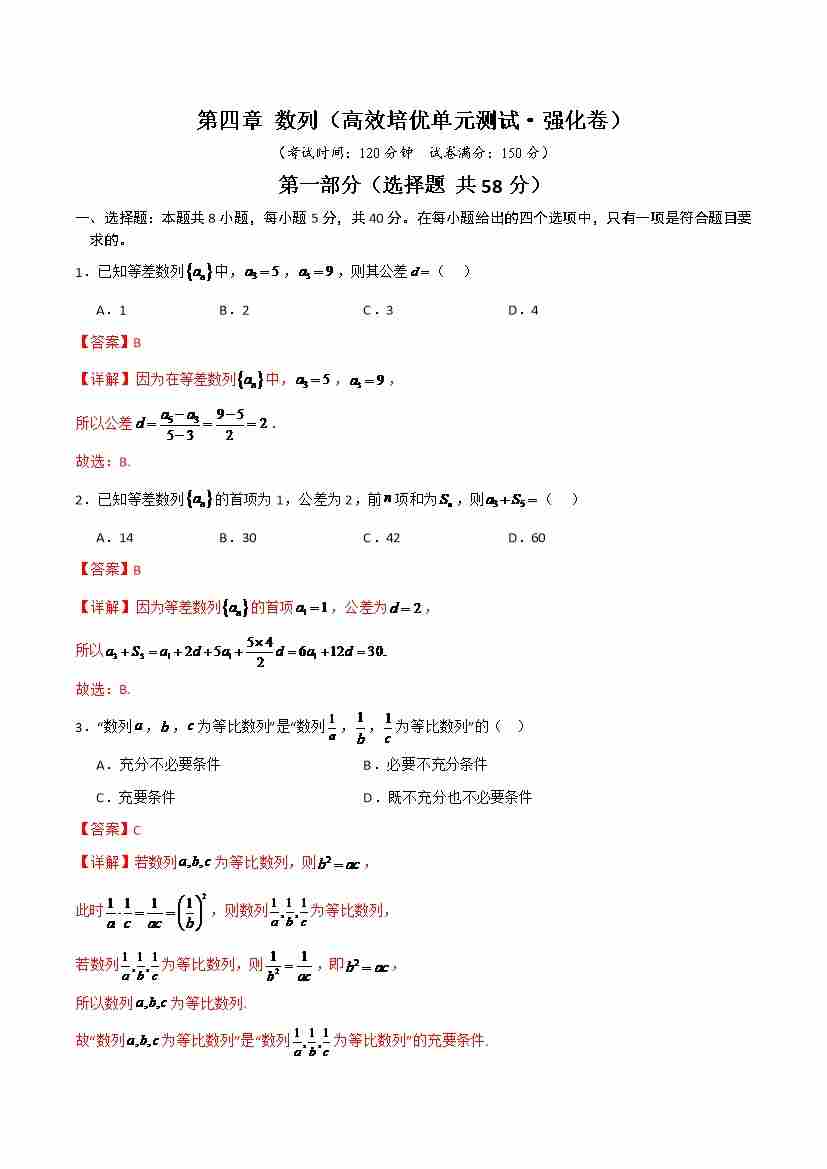 首页 > 全部 > 同步讲义 > 第四章 数列(高效培优单元测试·强化卷)(教师版)