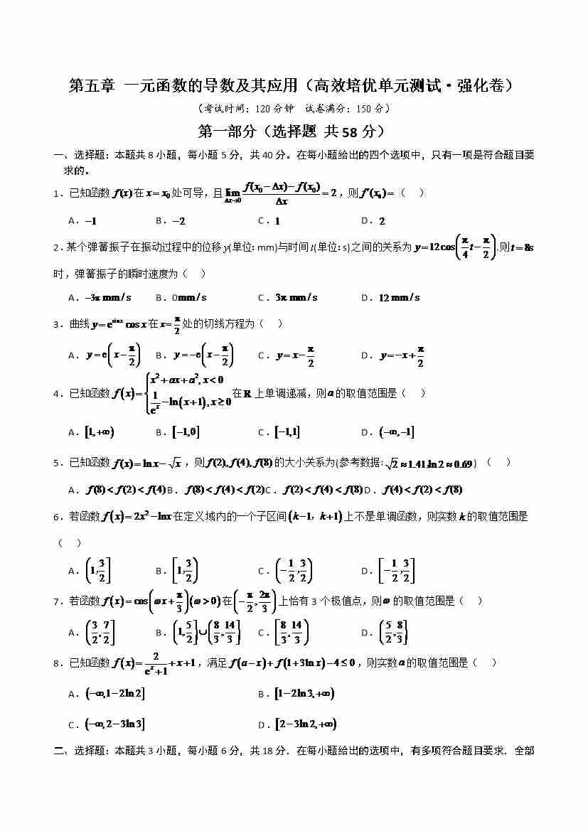 首页 > 全部 > 同步讲义 > 第五章 一元函数的导数及其应用 (高效培优单元测试·强化卷)(学生版)