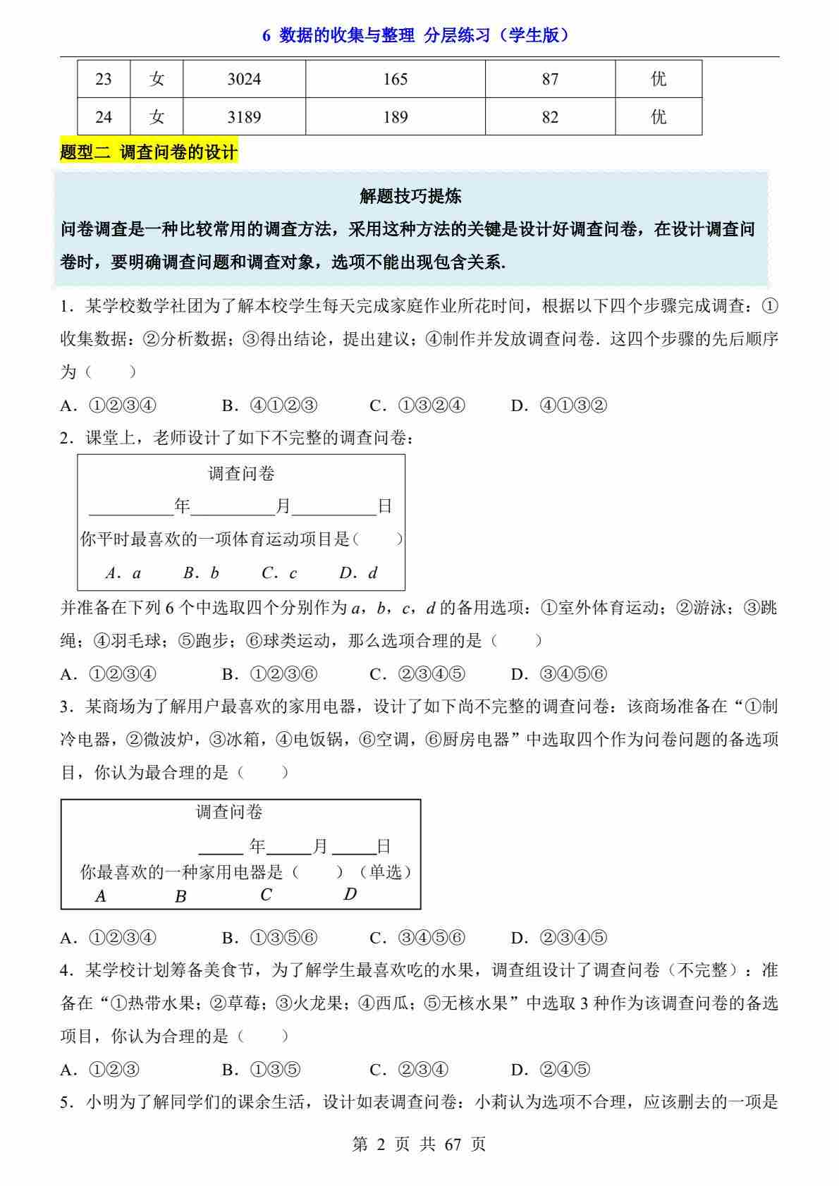 第六章 数据的收集与整理(分层练习) (2)