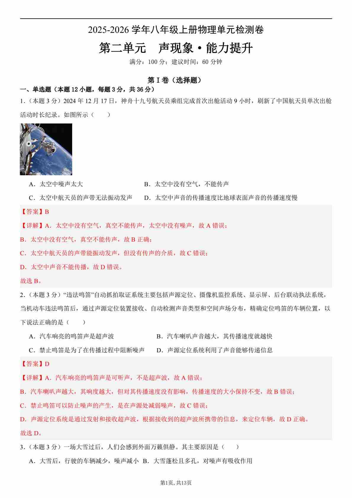 首页 > 全部 > 单元提升卷 > 【八上人教物理】第二单元 声现象(单元测试·提升卷)(解析版)1