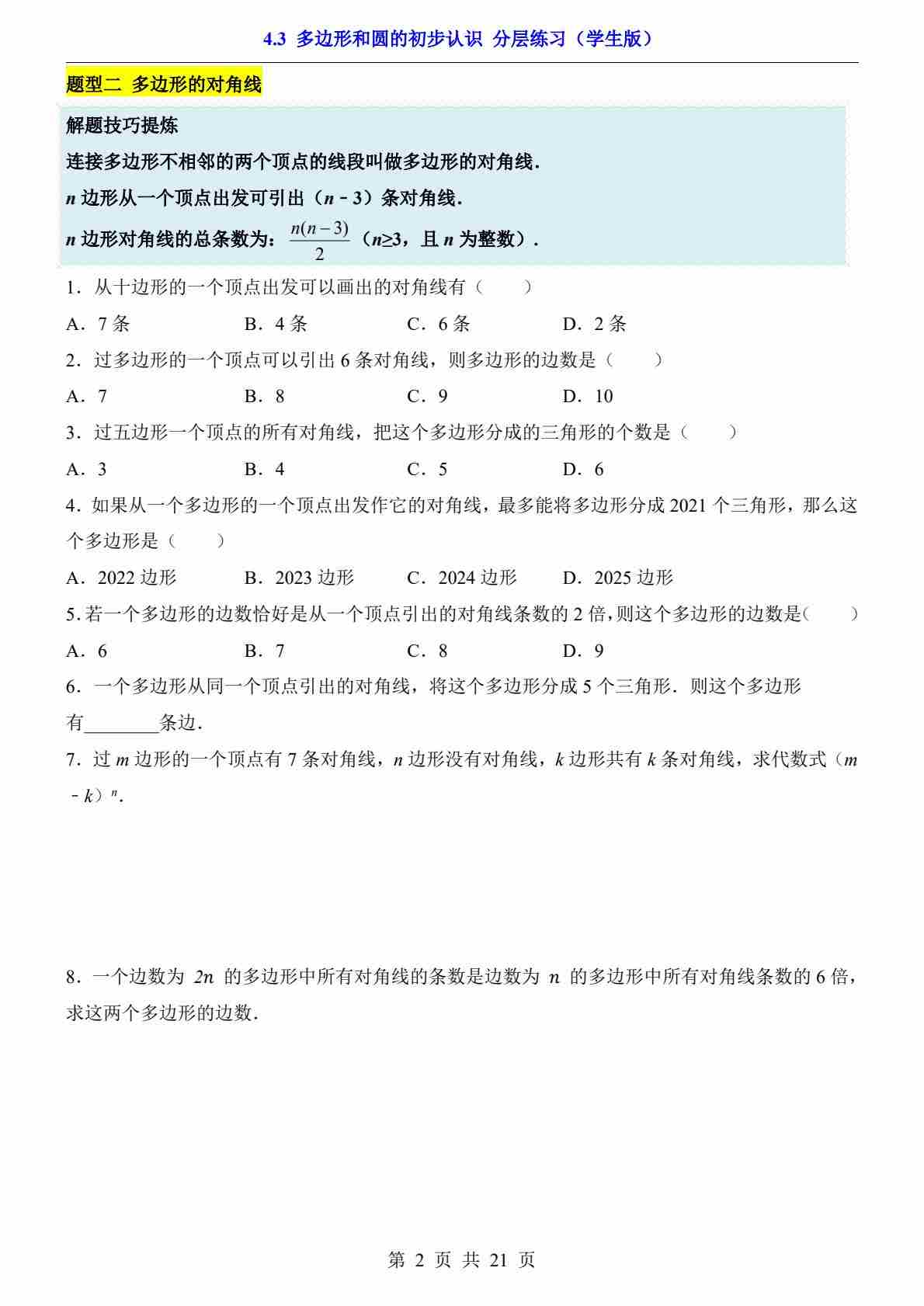 首页 > 全部 > 一课一练 > 4.3 多边形和圆的初步认识(分层练习)