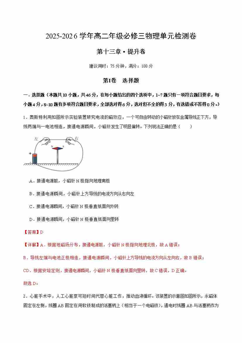 首页 > 全部 > 单元测试 > 第十三章 电磁感应与电磁波初步(单元测试·提升卷)(教师版)