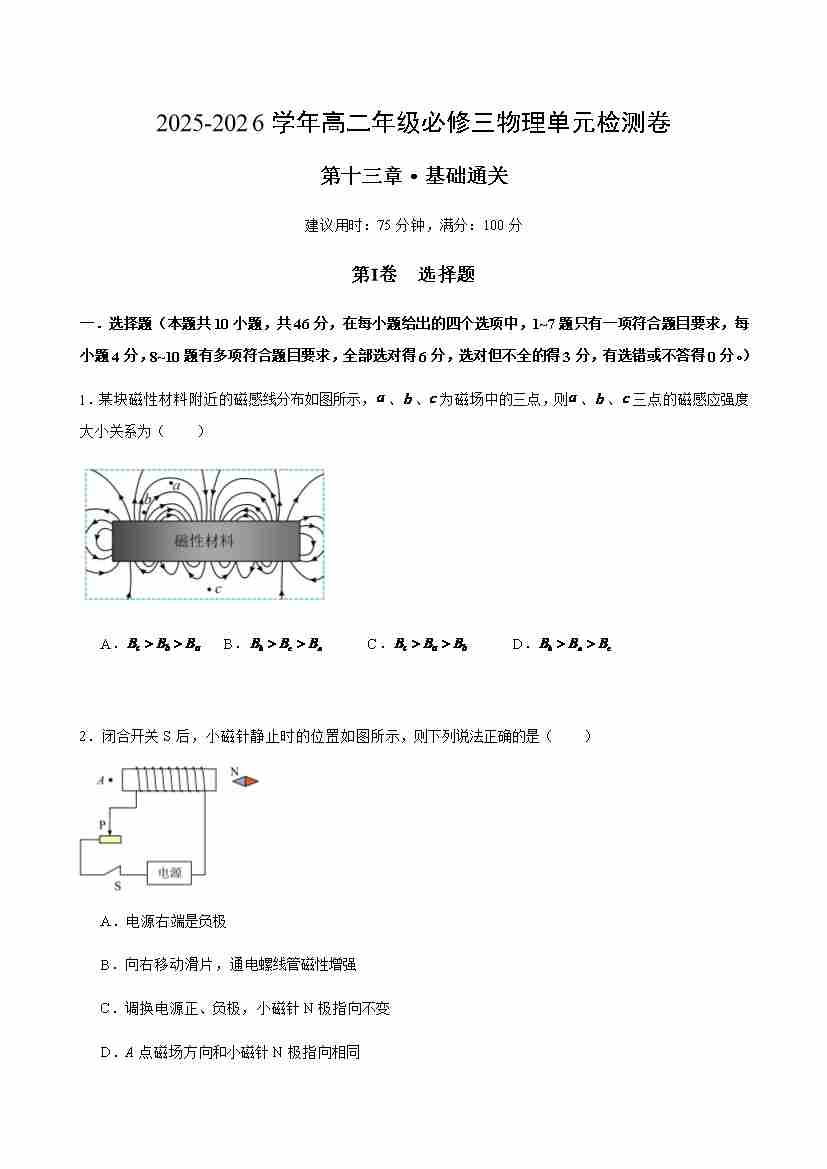 首页 > 全部 > 单元测试 > 第十三章 电磁感应与电磁波初步(单元测试·基础卷)(考试版A4)
