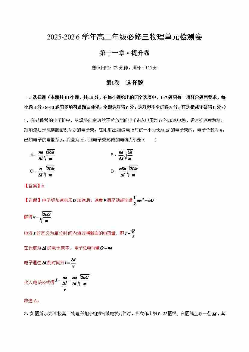 第十一章 电路及其应用(单元测试·提升卷)(教师版)