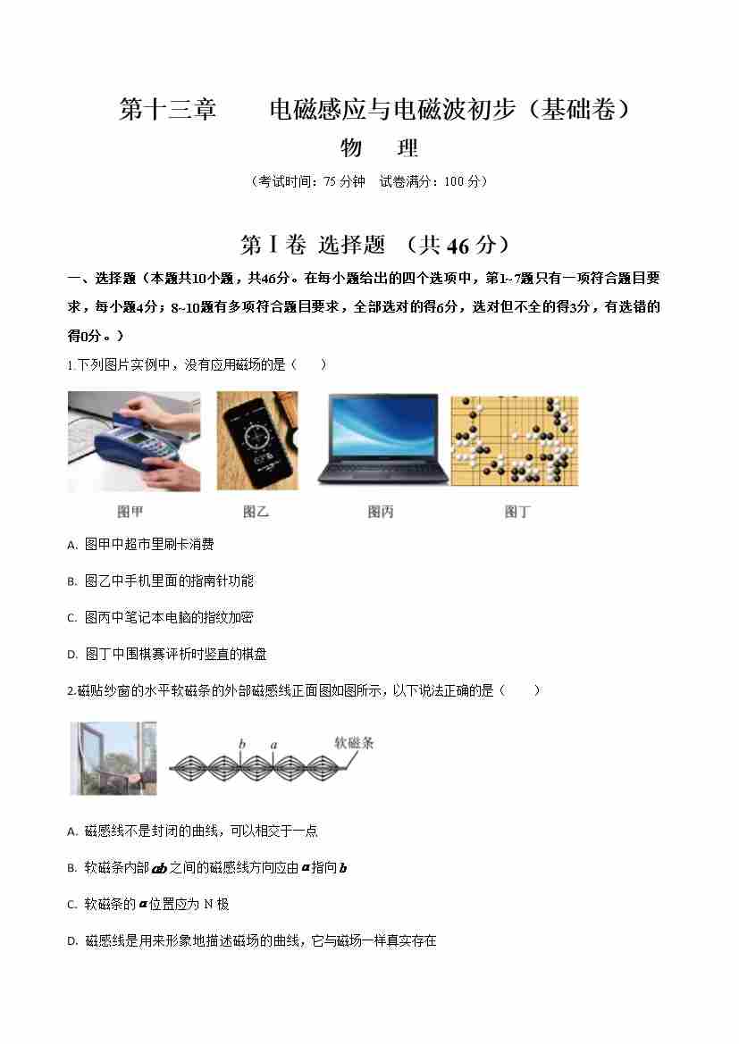 首页 > 全部 > 举一反三 > 第十三章 电磁感应与电磁波初步(举一反三单元测试·基础卷)(学生版)