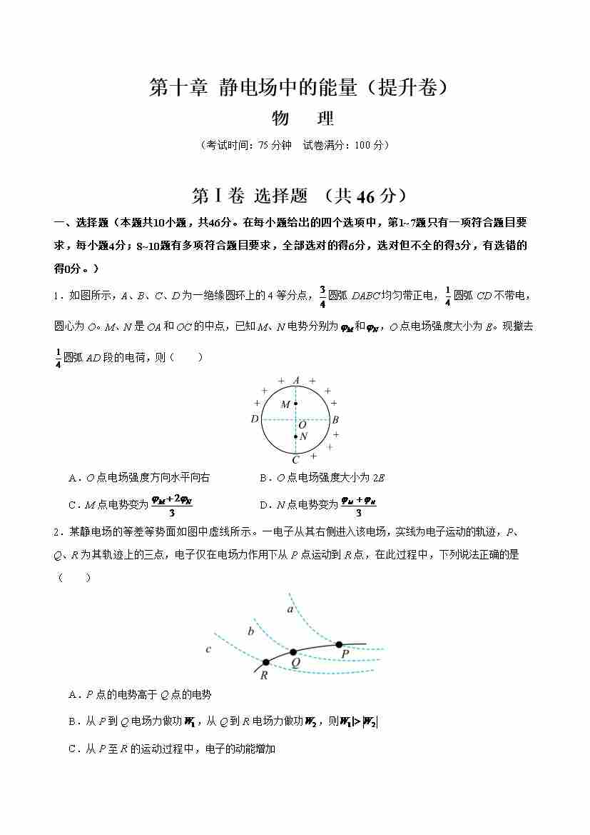 首页 > 全部 > 举一反三 > 第十章 静电场中的能量(举一反三单元测试·提升卷)(学生版)