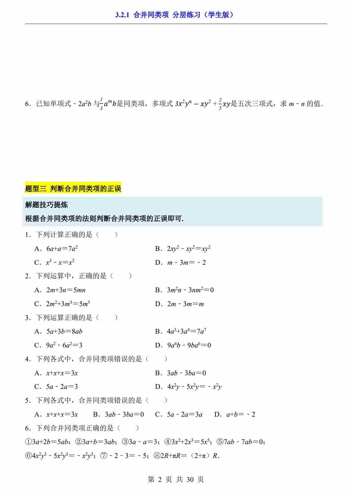 首页 > 全部 > 一课一练 > 3.2.1 合并同类项(分层练习)