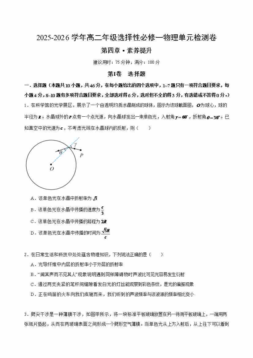 首页 > 全部 > 单元测试 > 第四章 光(单元测试·提升卷)(考试版A4)