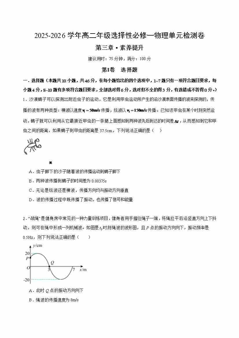 第三章 机械波(单元测试·提升卷)(考试版A4)