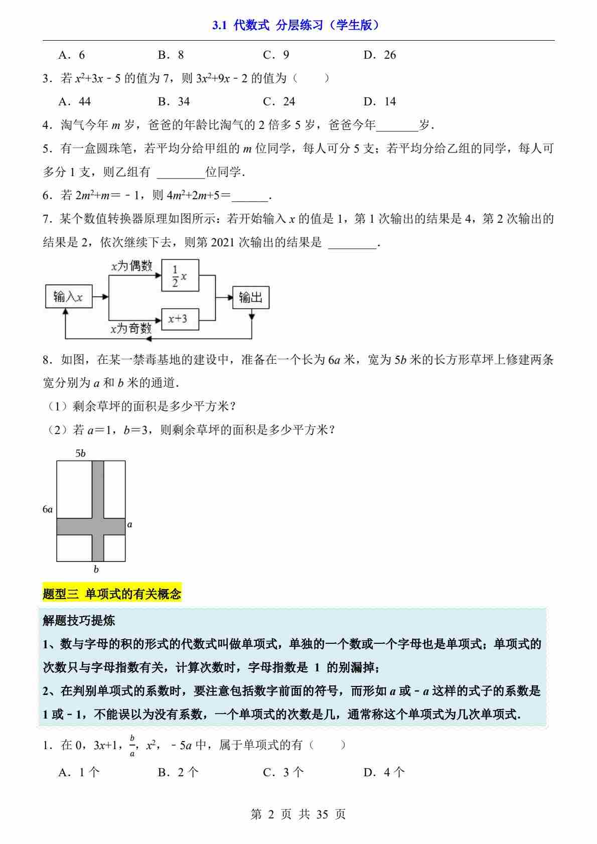 首页 > 全部 > 一课一练 > 3.1 代数式(分层练习)