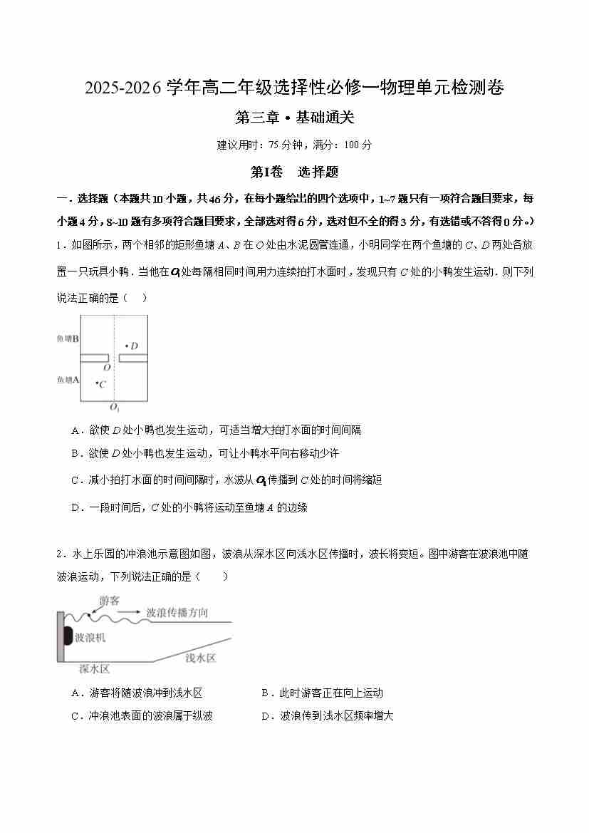 首页 > 全部 > 单元测试 > 第三章 机械波(单元测试·基础卷)(考试版A4)