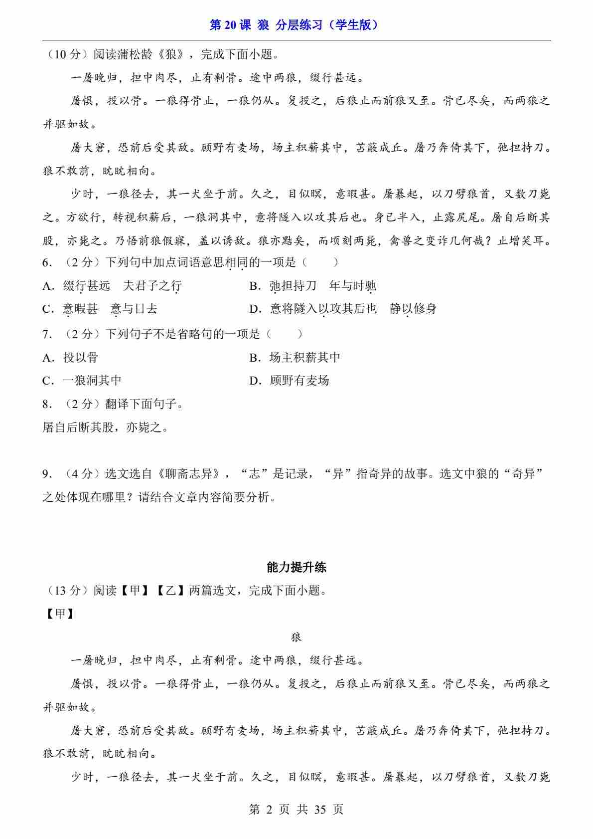 首页 > 全部 > 分层练习 > 第20课 狼(分层练习)