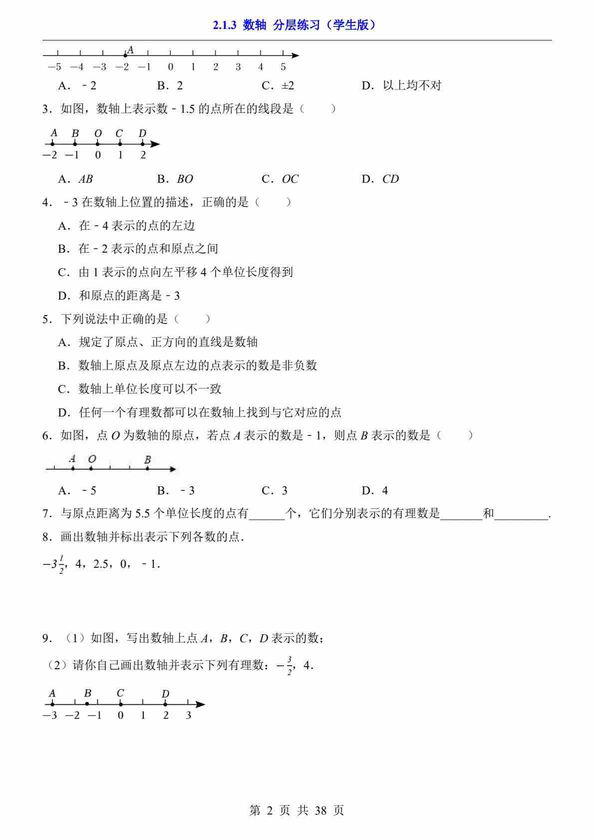 2.1.3 数轴(分层练习)