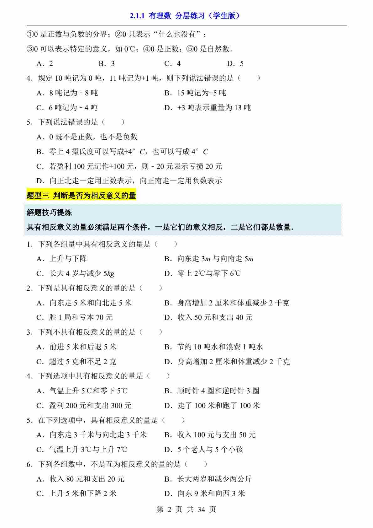首页 > 全部 > 一课一练 > 2.1.1 有理数(分层练习)