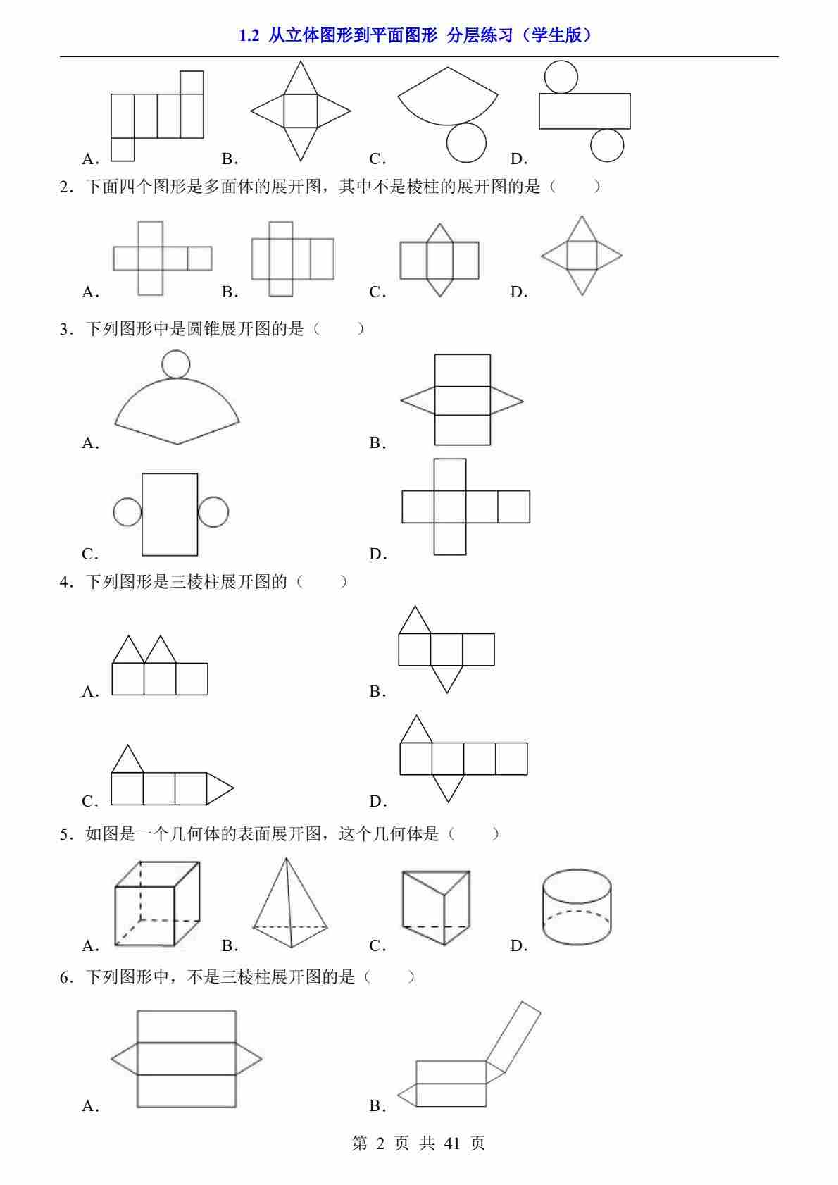 首页 > 全部 > 一课一练 > 1.2 从立体图形到平面图形(分层练习)