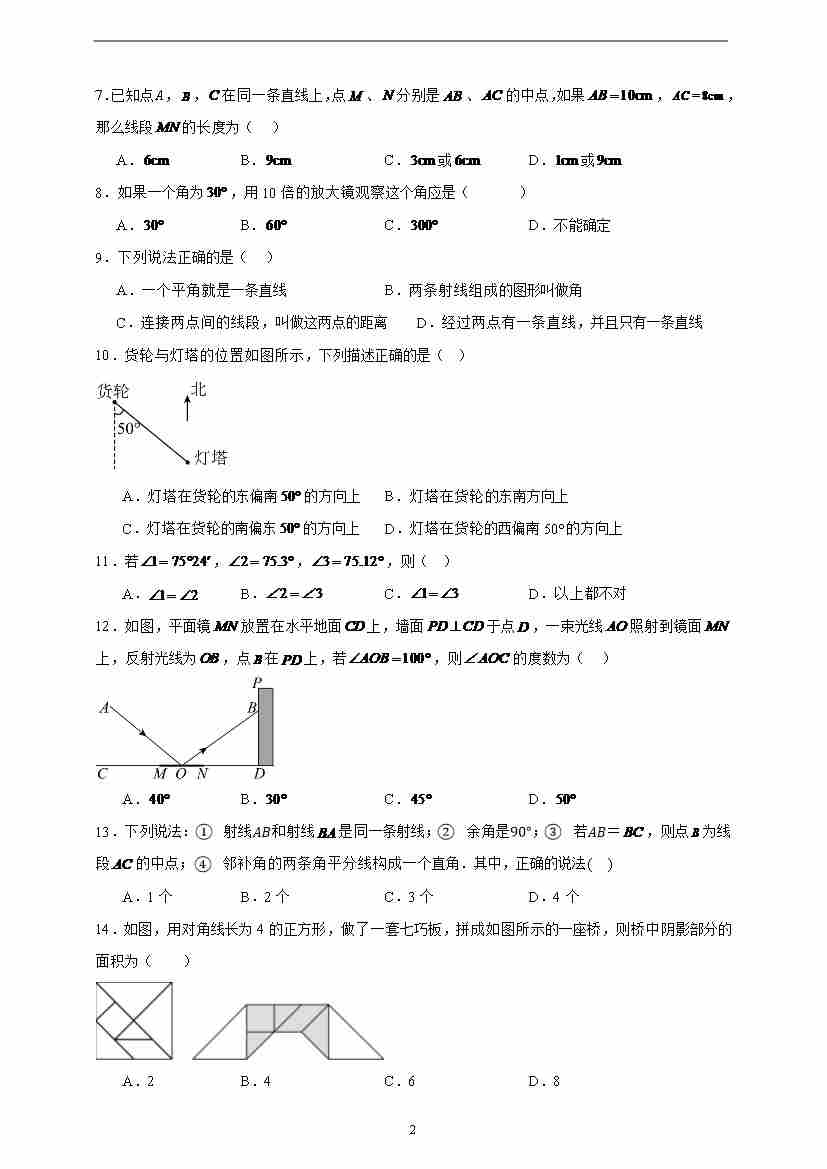 首页 > 全部 > 章节练习 > 第4章 基本平面图形 章节训练(含答案)2024-2025学年七年级数学上册 北师大版2024
