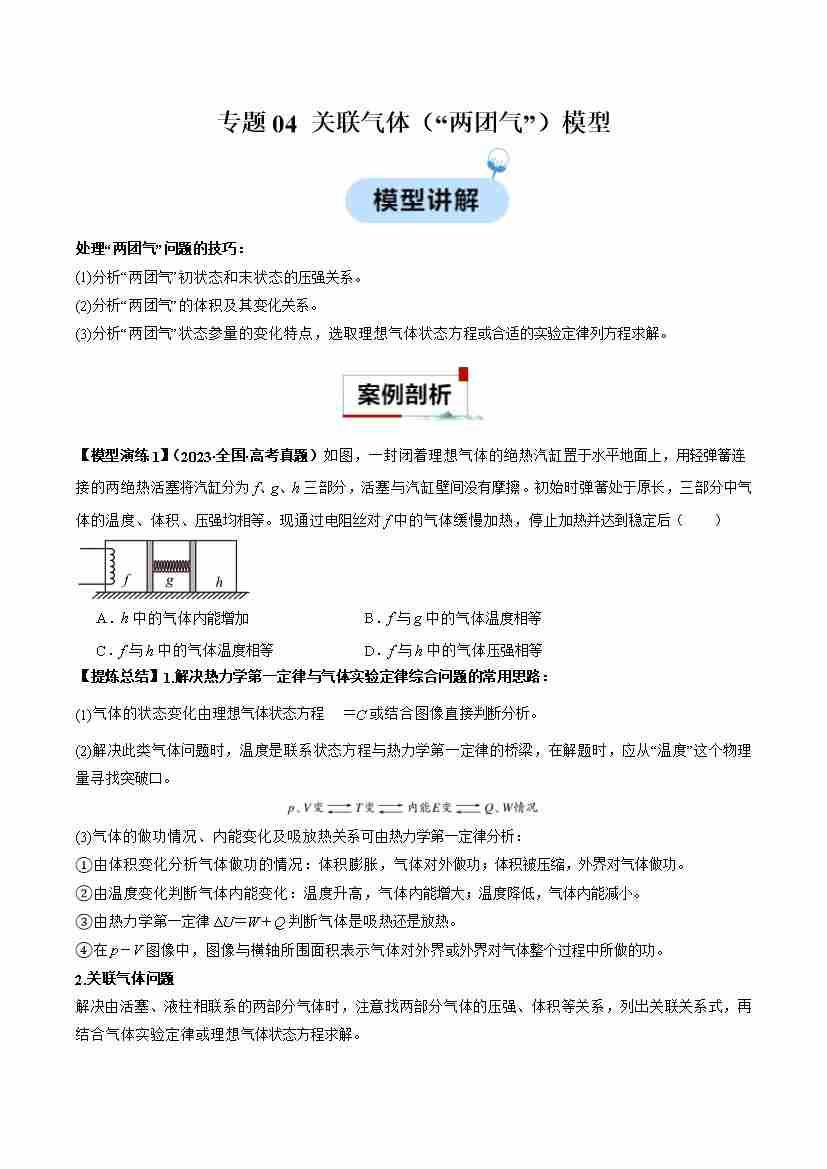 首页 > 全部 > 同步模型 > 专题04 关联气体(“两团气”)模型(学生版)
