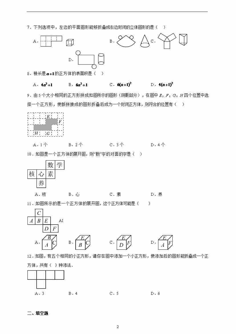 首页 > 全部 > 章节练习 > 第1章 丰富的图形世界 章节训练(含答案) 2024-2025学年七年级数学上册 北师大版2024