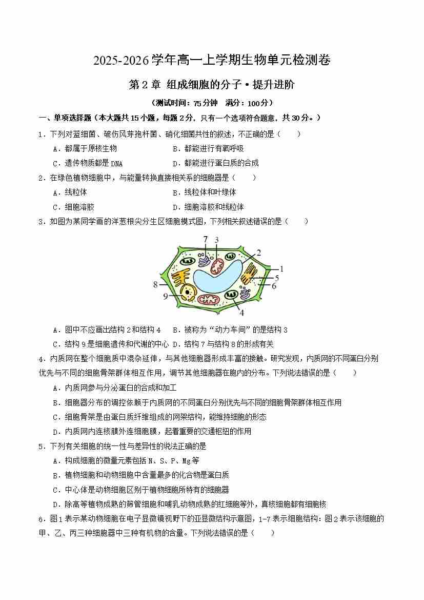 首页 > 全部 > 单元试卷 > 第3章 细胞的基本结构(单元测试·提升卷)(考试版A4)