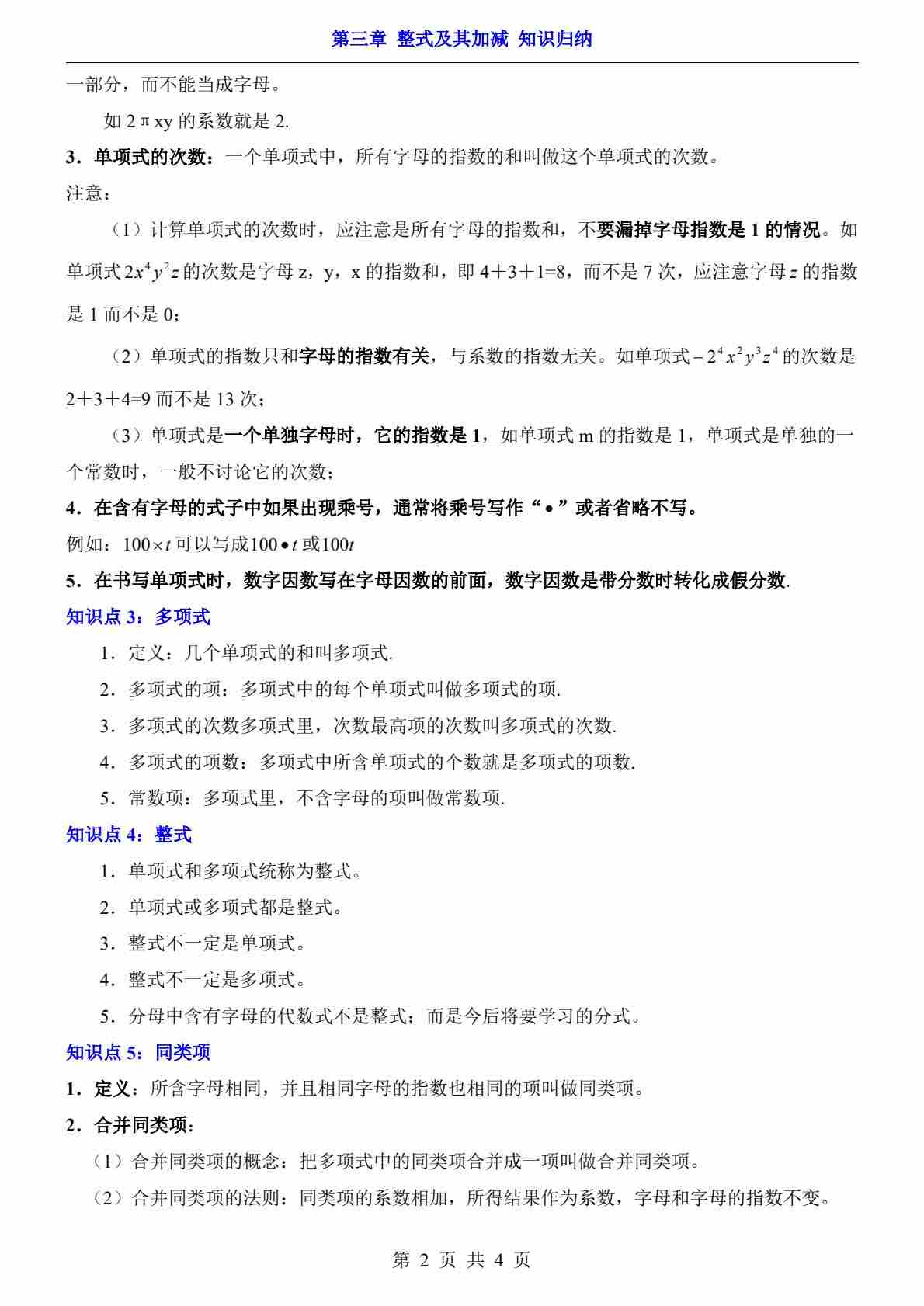 首页 > 全部 > 知识梳理 > 第3章 整式及其加减(知识归纳)
