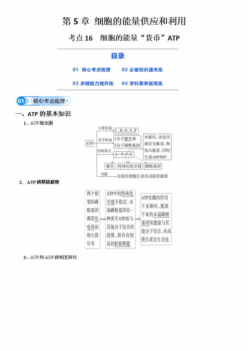 首页 > 全部 > 核心考点 > 第16讲 细胞的能量“货币”ATP (学生版)