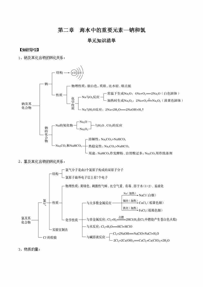 首页 > 全部 > 知识总结 > 第二章 海水中的重要元素—钠和氯(单元知识清单)-(人教版2019必修第一册)