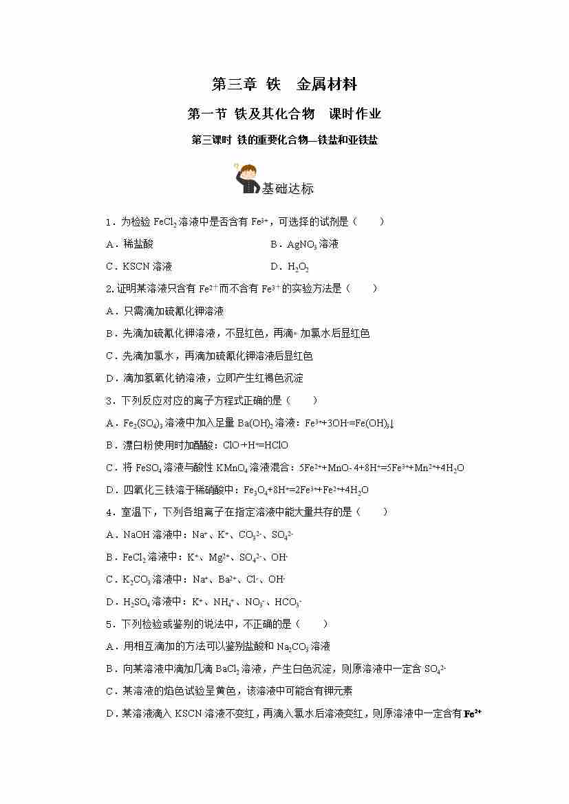 3.1.3 铁的重要化合物—铁盐和亚铁盐(分层作业)-(人教版2019必修第一册)(原卷版)