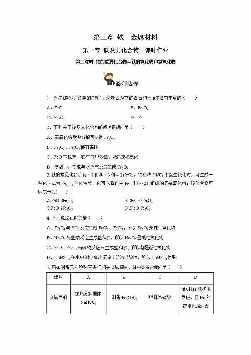 3.1.2 铁的重要化合物—铁的氧化物和氢氧化物(分层作业)-(人教版2019必修第一册)(原卷版)