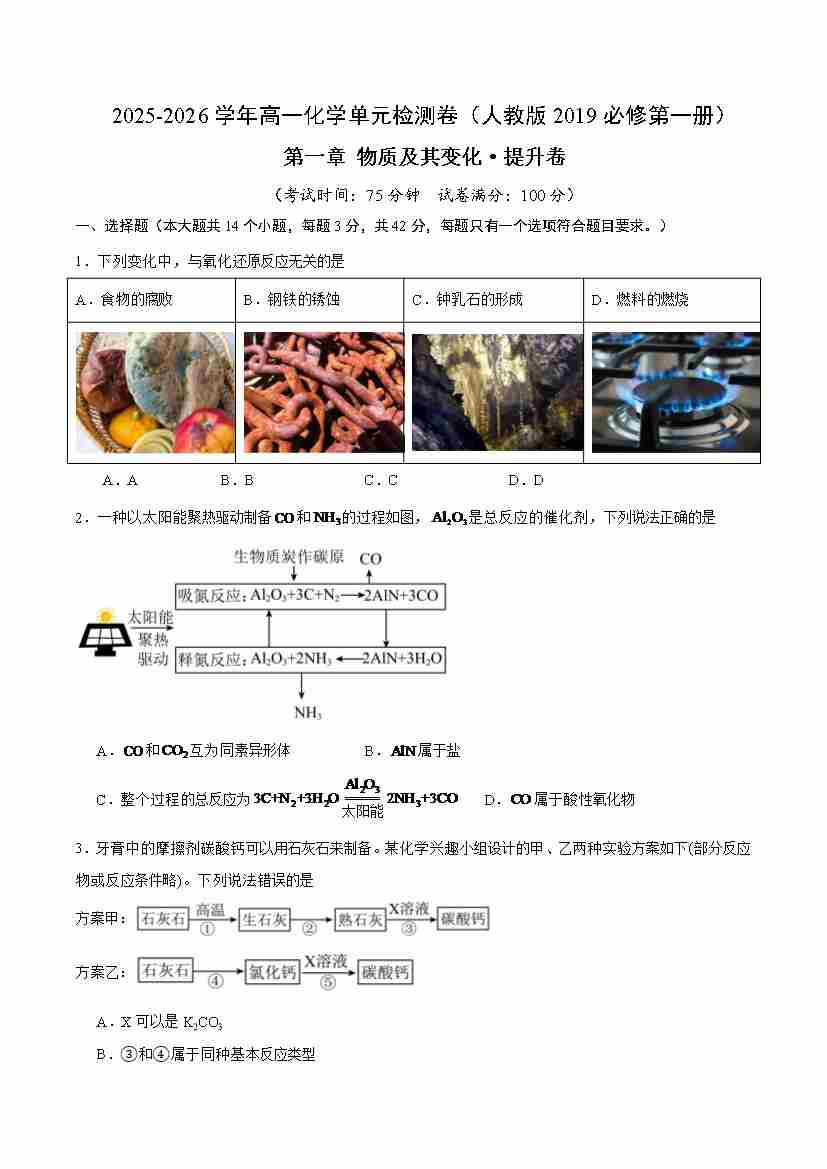 首页 > 全部 > 单元试卷 > 第一章 物质及其变化·提升卷(考试版A4)